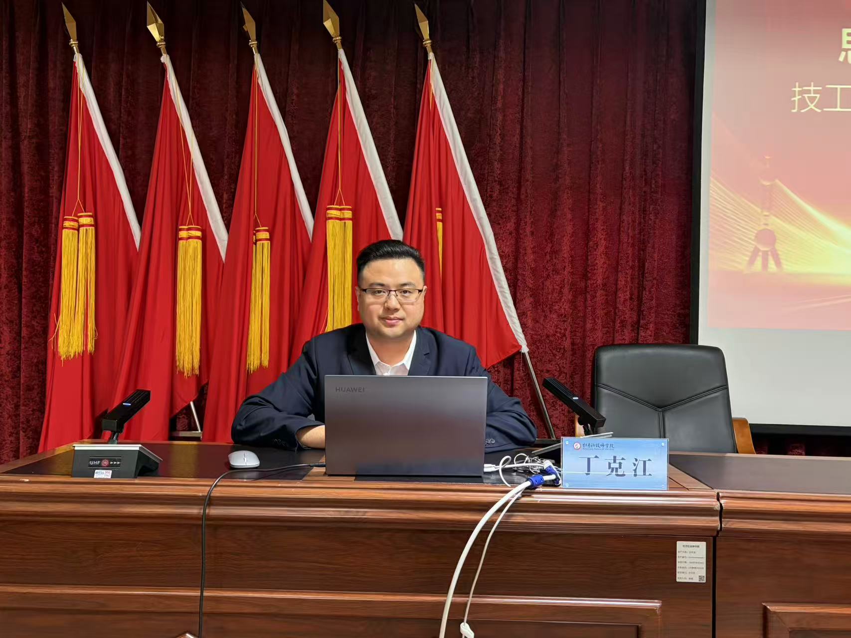 下午培训由学院思政教研室主任、全国技工院校教师职业能力大赛一等奖获得者丁克江讲师主讲,主题为《思政引领,匠心铸魂——技工院校在大中小学思政课一体化建设中的课程思政实践》。丁克江老师结合多年教学育人经验,深入阐述了课程思政的内涵逻辑、实施方法与典型案例,并重点分享了如何依托学院“五培德育”工程赋能学生成才。讲座情感真挚、贴近实际,强调了思政教育融入专业教学全过程的重要性,为教师落实立德树人根本任务提供了清晰指引。
