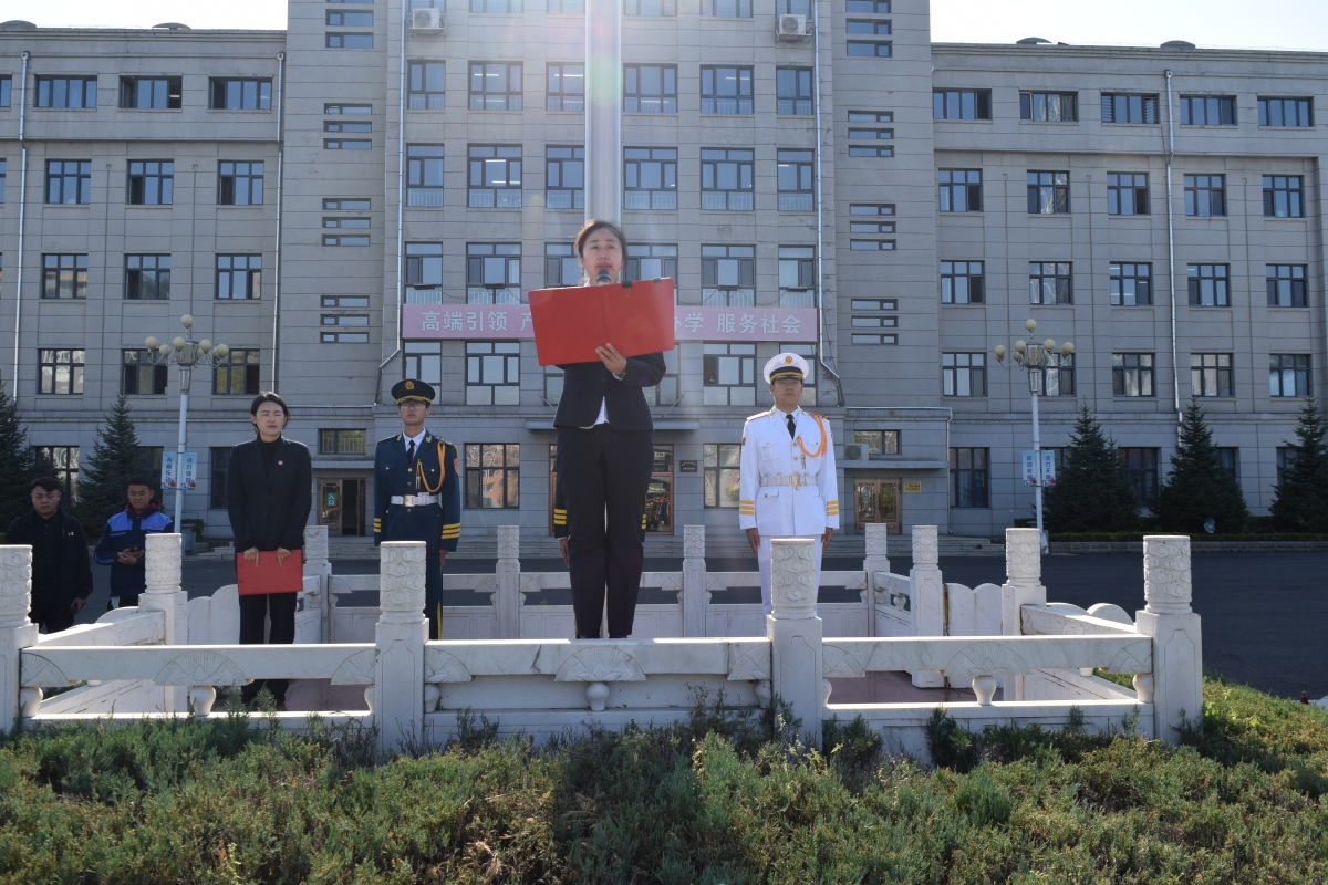 10月13日,牡丹江技师学院举行了“和谐校园,法治同行”主题升旗仪式。本次升旗仪式由机电工程系承办,学院党委委员、纪委书记高向阳,党委委员、副院长陈令刚,党委委员、党政办公室主任刘琳及全院师生出席并参加此次升旗仪式。