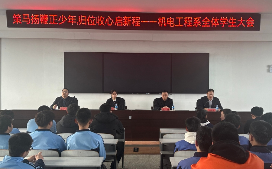 春风浩荡启新篇,少年逐梦正当时。为帮助学子快速收心归位,明确新学期学习成长目标,凝聚奋进力量,3月10日,机电工程系召开以“策马扬鞭正少年,归位收心启新程”为主题的新学期学生大会。系主任沈桂军,副主任高林、姚光伟,系团总支书记马俊先及全体班主任、学生共同参会。