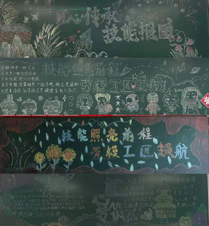 学院组织了主题板报和手抄报绘制活动。各班级积极参与,精心设计,一幅幅图文并茂、内容丰富的作品在教室展示,成为了宣传劳模工匠精神、展示技能魅力的生动窗口,既美化了校园环境,也使学生在创作过程中接受了潜移默化的教育。