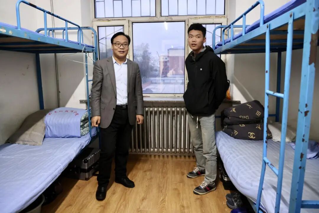 10 月 16 日,牡丹江技师学院党委书记吕桂军带领相关部门负责人,深入学生宿舍开展专项检查,重点围绕冬季供暖效果、学生餐饮服务质量、寝室文化与休闲配套设施、生活设施安全运行及日常管理细节,与学生面对面交流,细致了解住宿生活需求与实际问题。