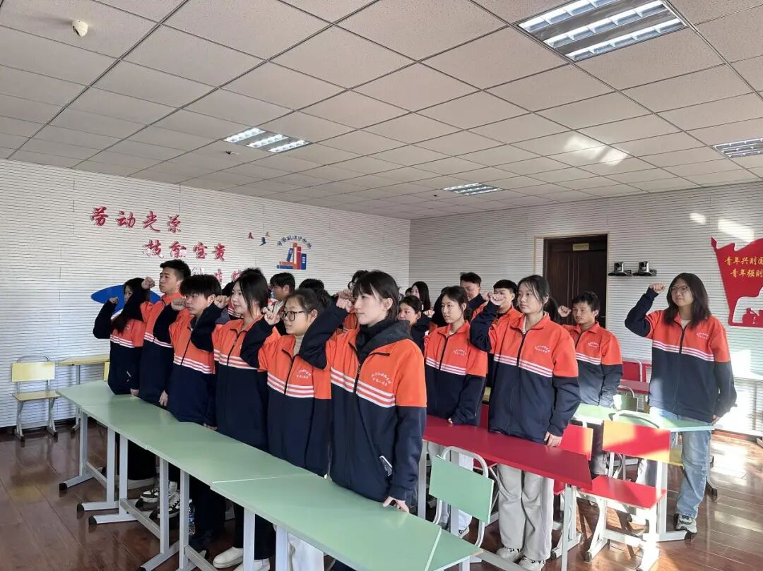 互动环节中,团员踊跃分享感悟。2023级李同学表示,通过此次团课学习,明晰了国家公祭日“铭记历史、警示未来”的核心意义;另有团员提出,新时代青年技工应兼具技能本领与家国大义,引发全场共鸣。活动尾声,全体团员面向国旗庄严宣誓,彰显报效祖国的坚定决心。