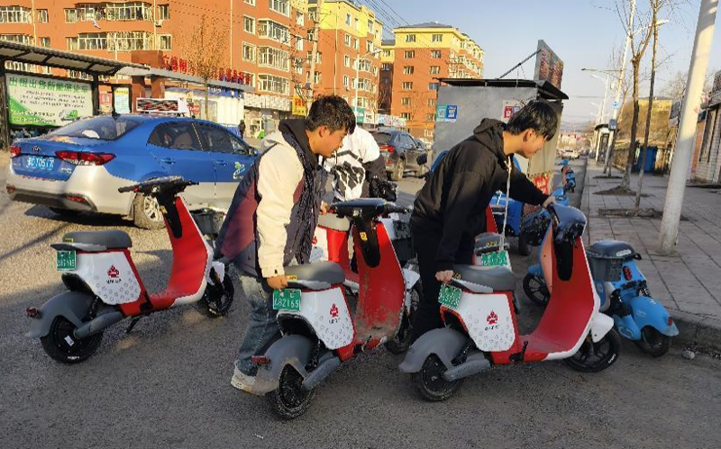 3月15日清晨,我系团员及志愿者主动将兴平路街道两旁的共享单车摆放整齐。