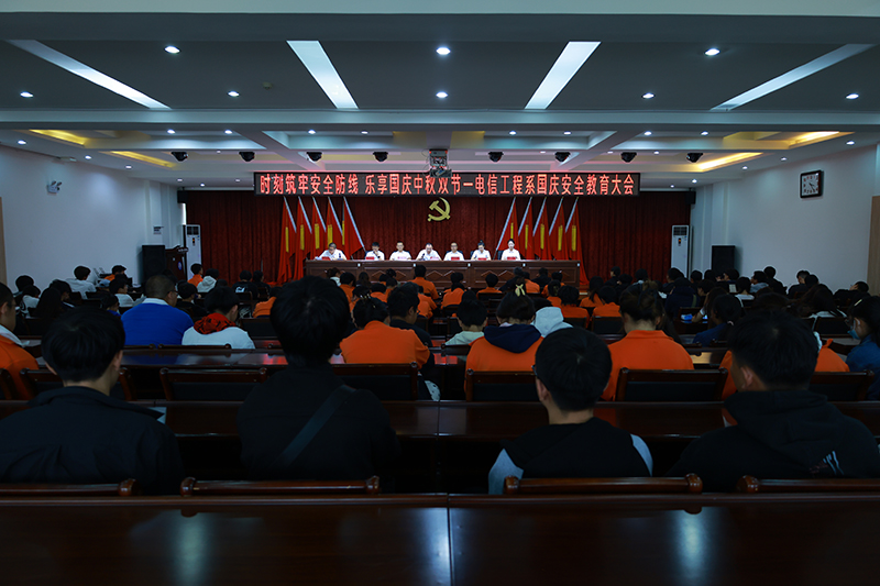 为确保国庆节与中秋节假期校园安全稳定,营造平安和谐的节日环境,电信工程系近日于南六楼会议室组织召开“时刻牢记安全防线 乐享国庆中秋双节”主题安全教育大会。系领导、班主任及全体学生共同参会。