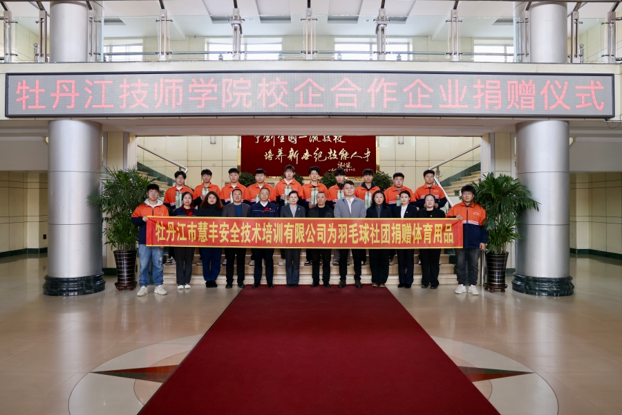 活动现场,牡丹江市慧丰安全技术培训有限公司向羽毛球社团捐赠30桶羽毛球,为社团开展日常训练与赛事活动提供了坚实保障。作为学院长期合作企业,慧丰安全技术培训有限公司始终关注学生综合素质培养。企业代表在致辞中表示:“校企合作不仅是技术与人才的对接,更应延伸至学生全面发展的方方面面。我们希望通过支持体育社团建设,让学生在技能提升的同时增强体魄,成长为‘德技并修’的新时代工匠。”