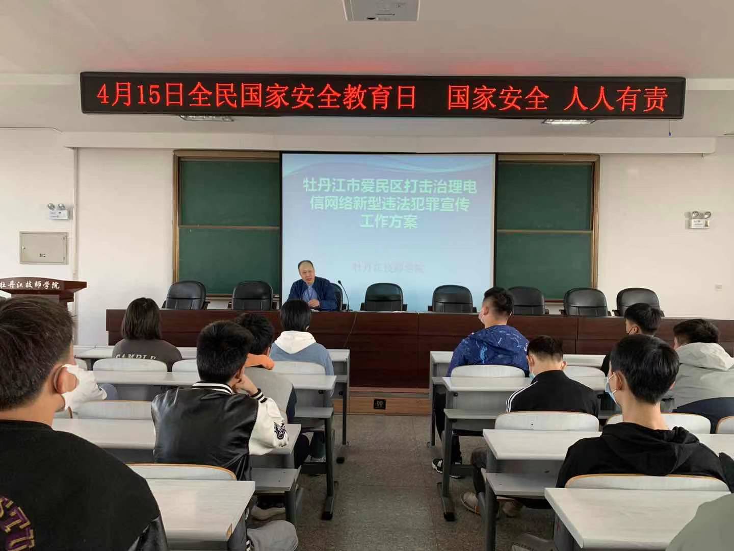 崔晓辉老师说:“4月15日,在全民国家安全教育日来临之际,为全面落实总体国家安全观,提高我院学生国家安全意识,开展本次讲座。”讲座中崔老师首先介绍了“全民国家安全教育日”的由来,宣传了国家安全有关法律知识,并结合我院实际和有关案例,与新生就国家安全、校园安全等方面展开了诸多交流。通过宣讲,进一步增强了我院学生对国家安全的认识,充分认识了学校安全稳定的重要意义。崔老师希望同学们在今后的生活和学习中增强危机忧患意识、树立国家安全观念,积极维护国家安全。