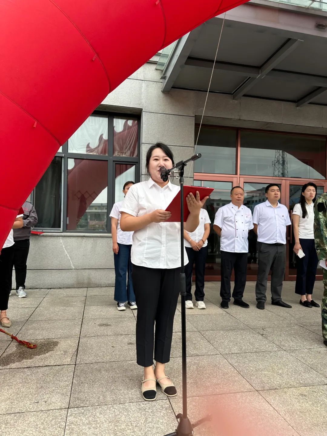 军训指导员代表张茜对同学们提出期望,愿珍惜团体经历,发扬军人精神,领悟训练意义,主动迎接挑战,勇于克服困难,以高质量的训练成果展现牡丹江技师学院学子的风采。